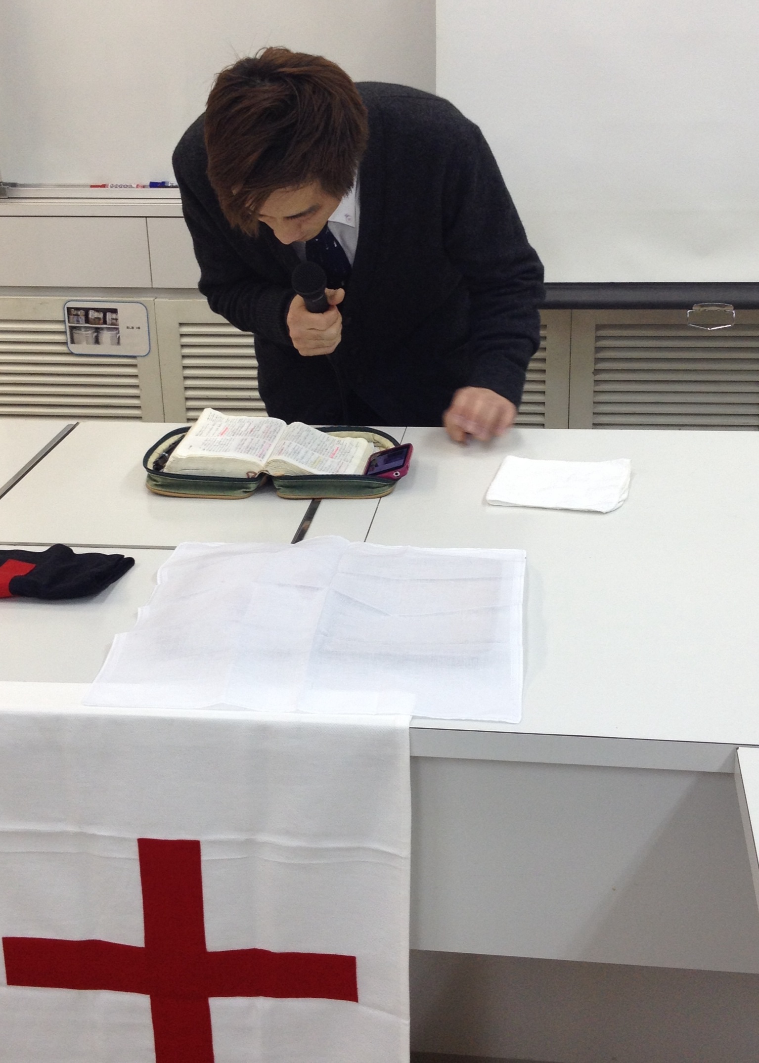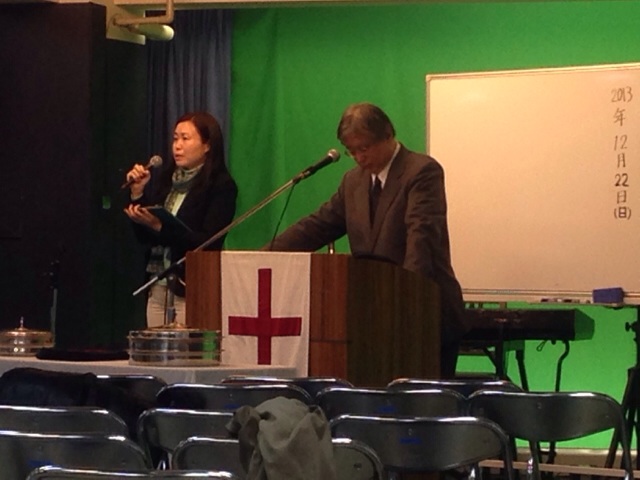 エステル毛内牧師のメッセージを通訳しているK兄 Osaka S