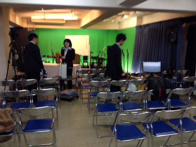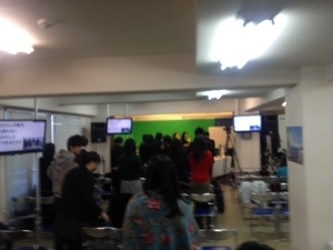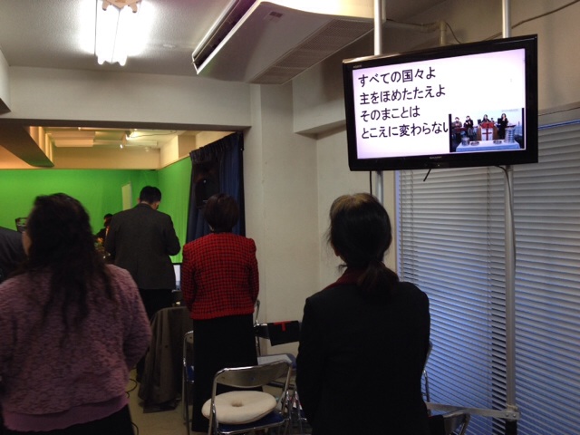 礼拝準備中です。わいわいしてます。