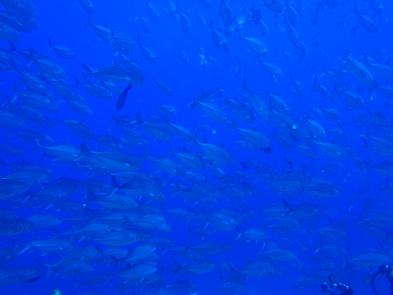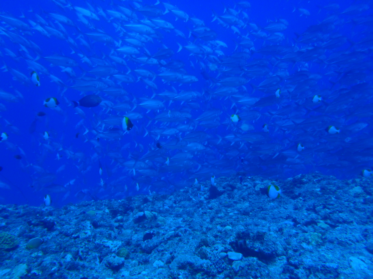 沖縄の海のアジの群れ。沖縄にも主の群れがたくさん!