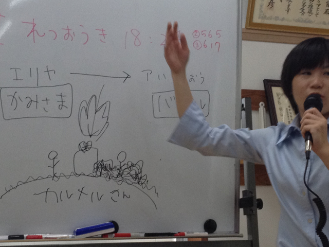 メッセージは、第一列王記から。 エリヤのお話。 みんな本当の神様を信じ、本当の神様に従いましょう!