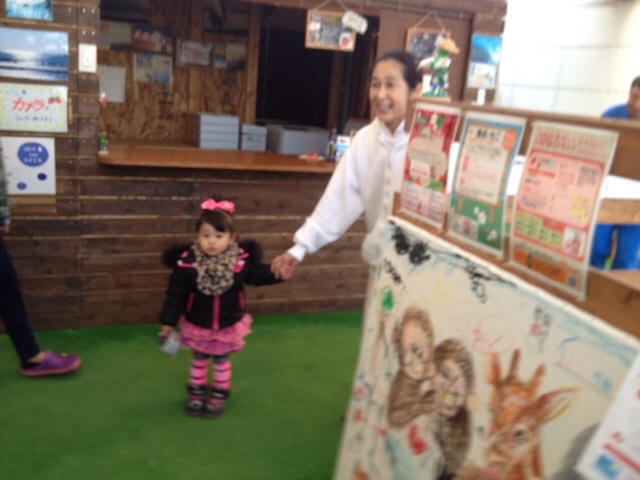 寺田さんとお話ししています! 何歳ですか? 身長は?などなど お話しが弾んでいます^ – ^ 四日市シオン教会
