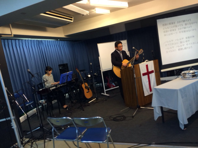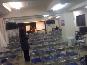 会堂では土曜礼拝をやっていました! 益川さんが賛美リード中です!