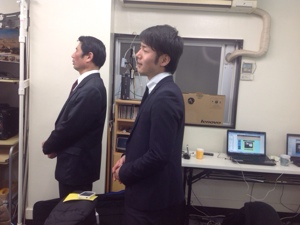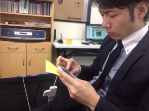 休憩中にプロジェクターの順番をチェックしている、ダビデ君!