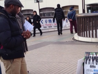 来ました、ギフツ軍団。主の軍です。これからギフツの船橋での路上が始まります。 船橋