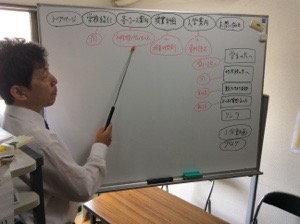 次々と説明をこなしています。 荒地に川ミュージック PA