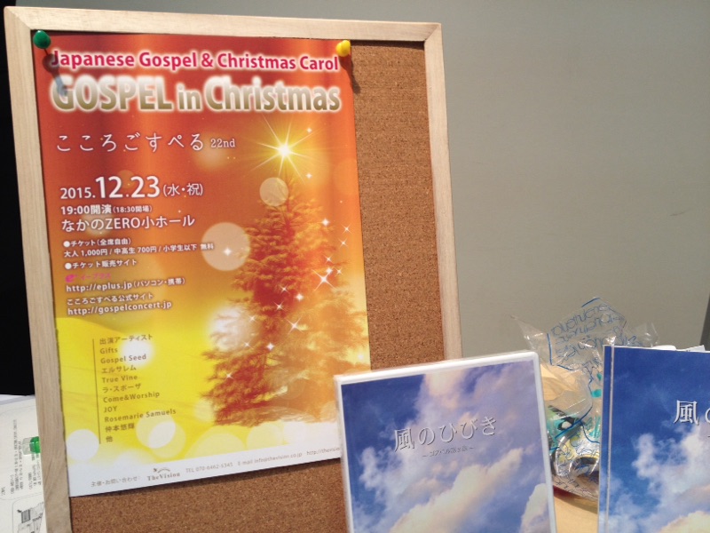こころごすぺるコンサートのパンフレットも展示し、配ります! 荒地に川ミュージック PY