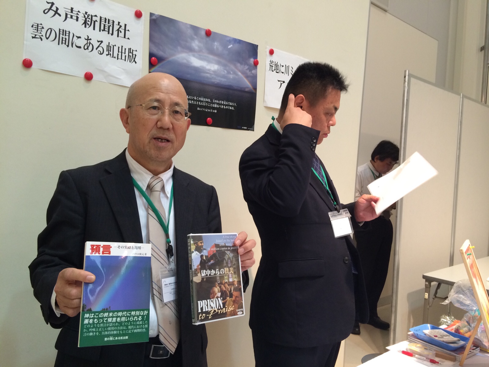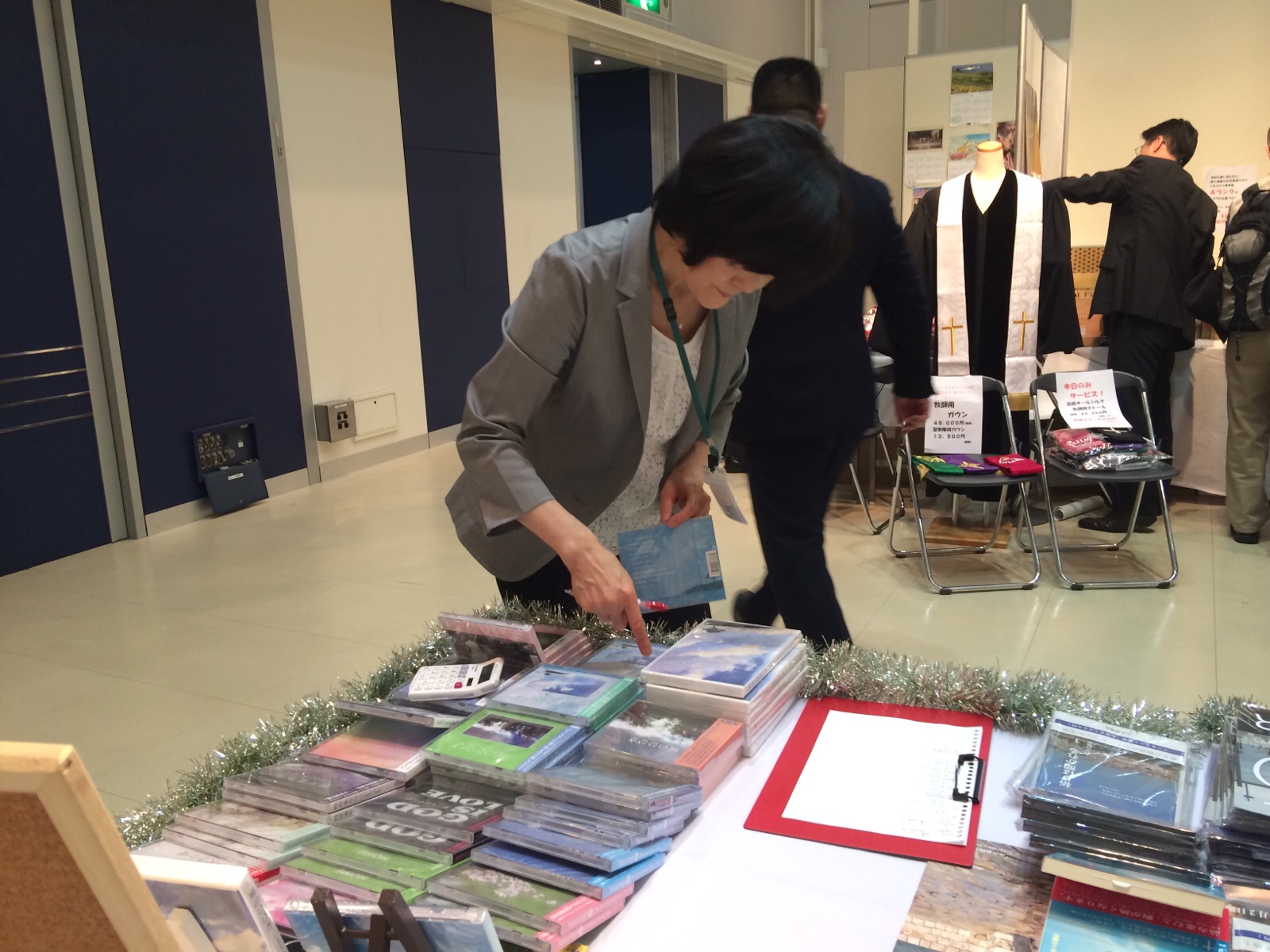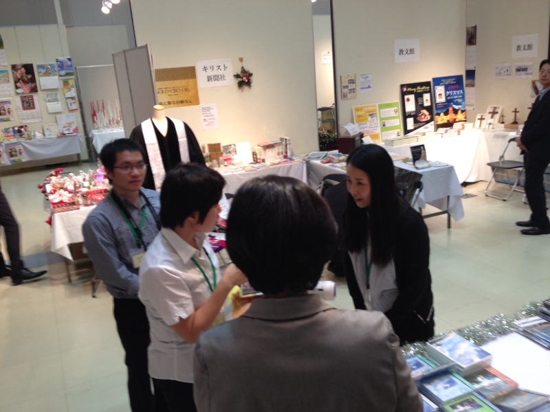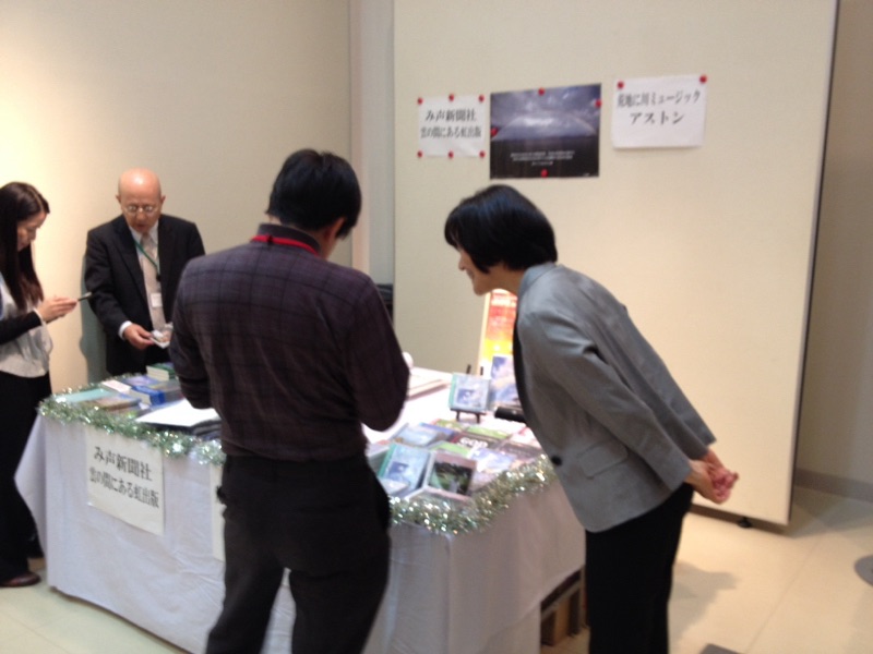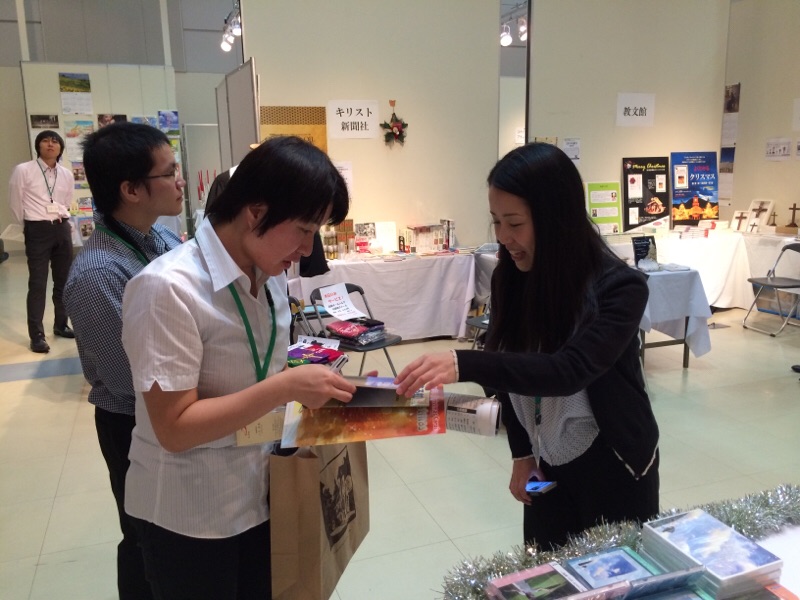 2人で接客中。 コンサートの案内を興味深く受け取ってくださいました。