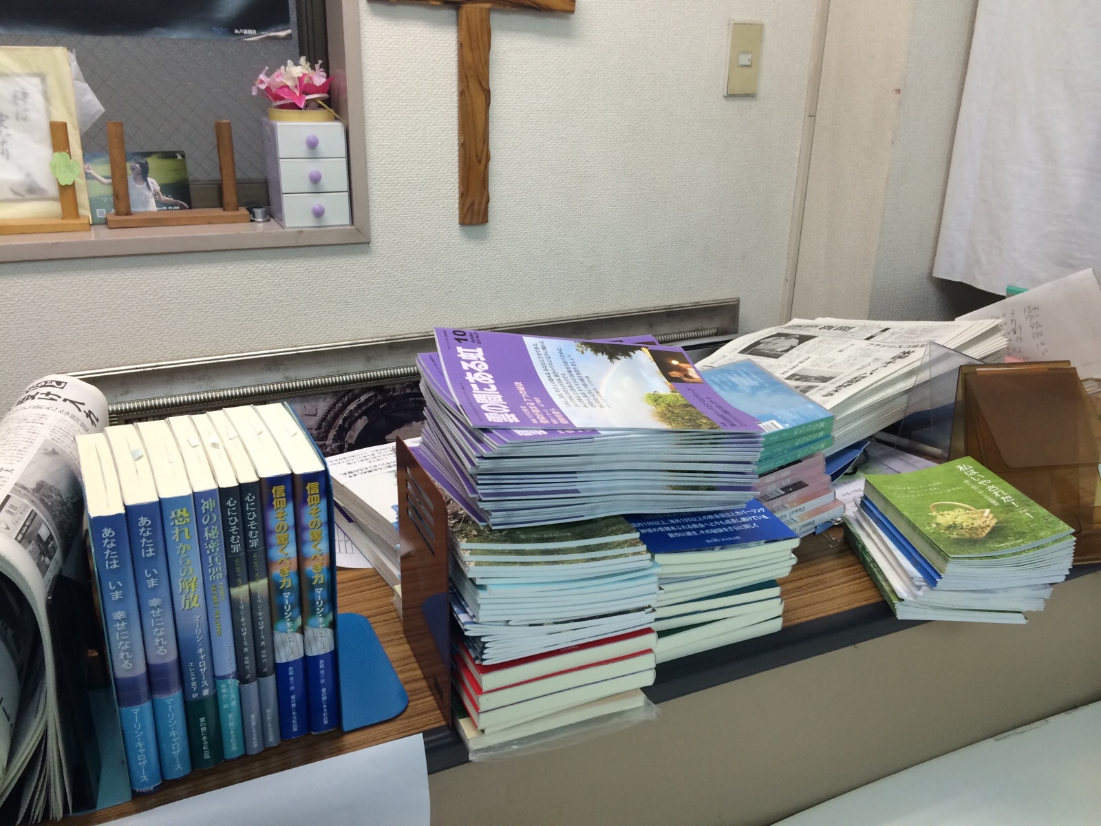 今日は、荒地に川ミュージック、雲の間にある虹出版、み声新聞の、商品のお片づけ、あります。昨日の教会販売のです。 雲虹@ミカエル