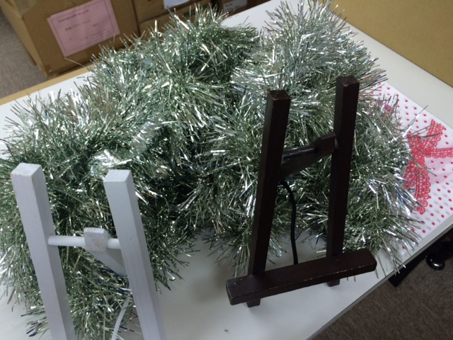 クリスマス見本市ということで、今年もモールを持参します! 毎年同じものなので、テープがくっついて剥がれませんが No problem! 荒地に川ミュージック Ruth Y