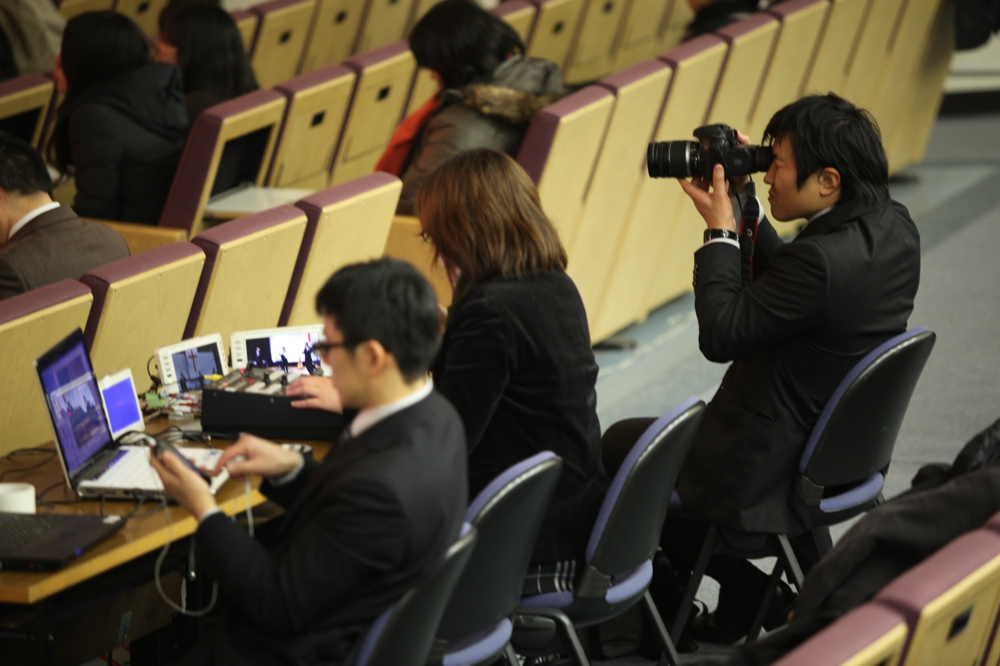 こちらは映像のコントロールをしているスタッフです。出西光牧師は一眼レフカメラで動画撮影を行っている様です。