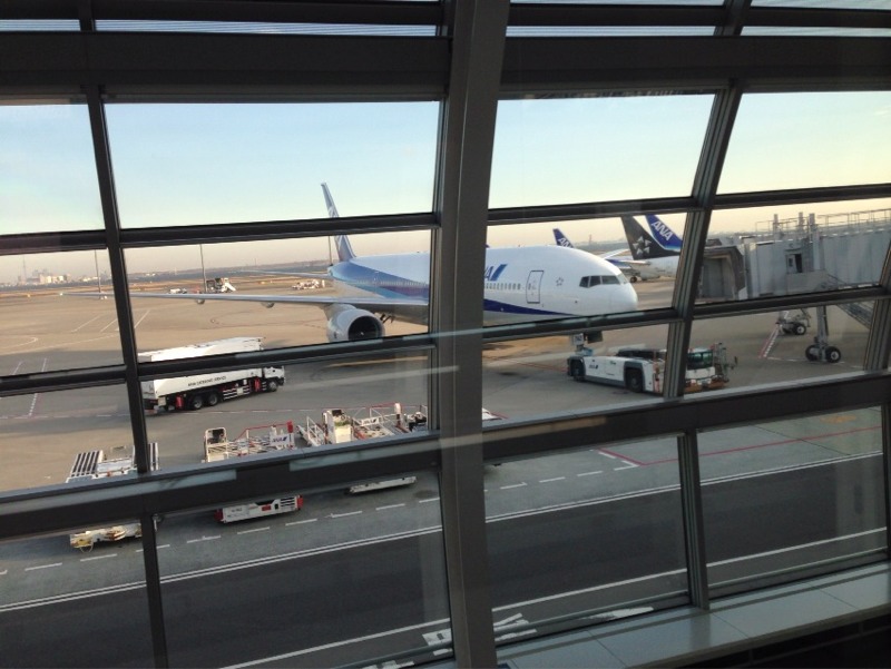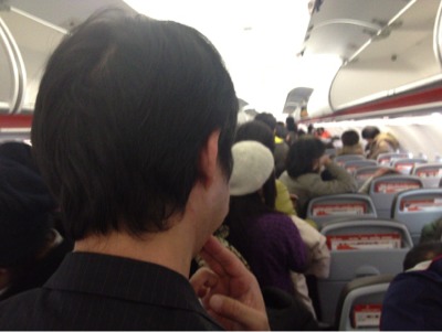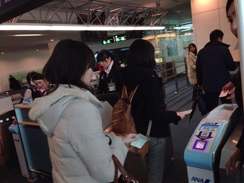 搭乗口でカメラを構えていたら、驚かれてしまいました。 (エステル)