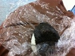 加藤牧師作のおにぎりもらって、食べてます。 (ミカエル)