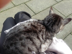 西坂には猫がいっぱいいます。 近づいてきた!と思ったら、ちゃっかり私の膝に。 Naomi