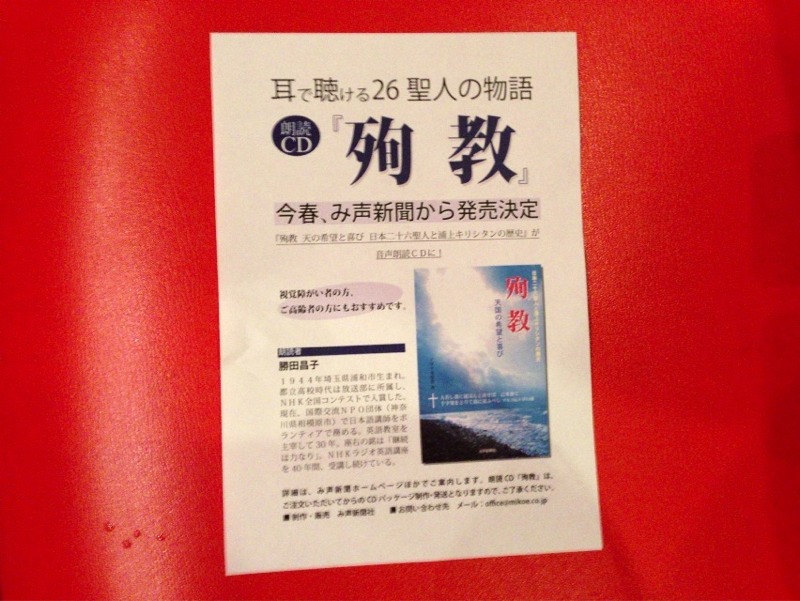 殉教、朗読CDが近日発売されます。その宣伝がドア付近で熱く繰り広げられています。