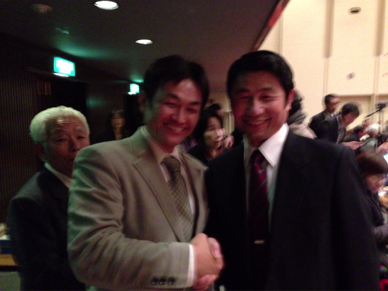 エリヤ牧師と益川さんみ声兄弟スタッフ。チラシもって近づいてきます。 み声の宣伝は迫ってくるものがあります?