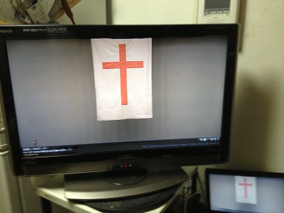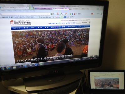 とりあえずテレビにパソコンをつなげてセットしました。 (東京から Joy)