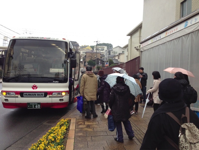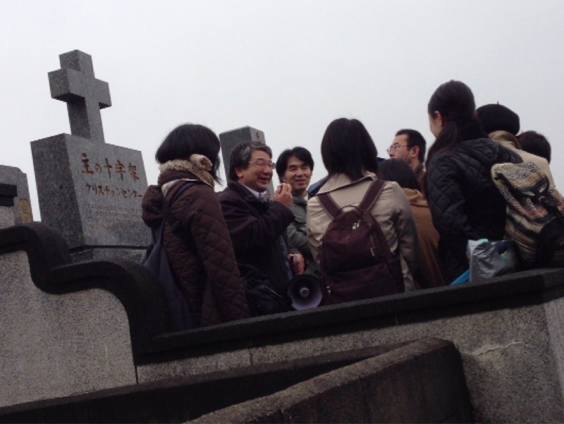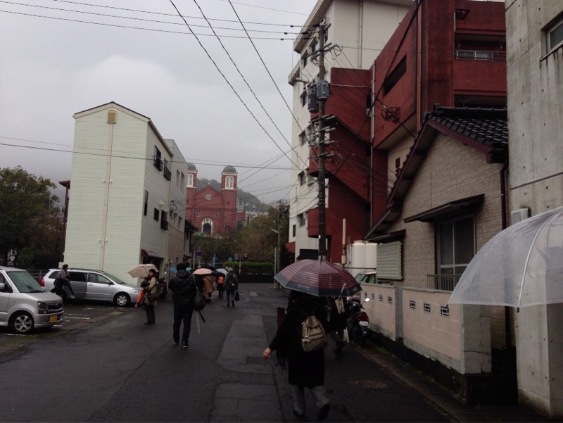 浦上天主堂の近くを歩いてバスで移動中。