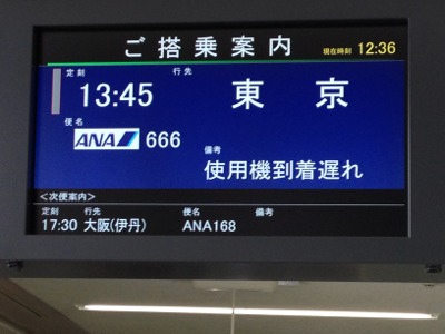 13時45分出発予定だった羽田行き666便は 10分遅れの出発になったようです。 ヨセフ
