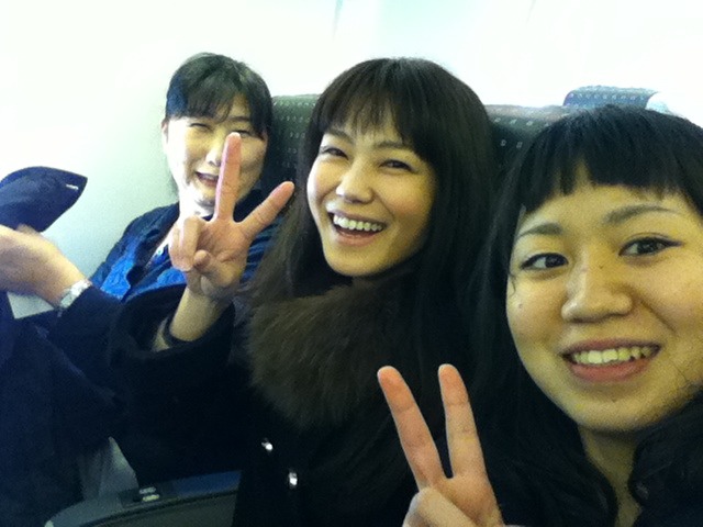 機内ではまりちゃん親娘の隣りの席でした! 滑走路使用の関係か、飛行機が急いでくれて、結局、予定通りの時間でした。感謝です(^^) Yui