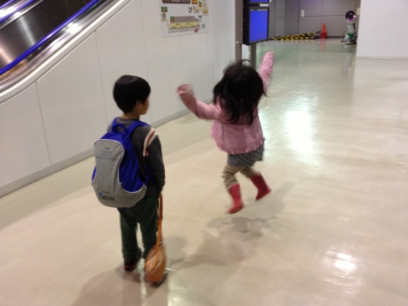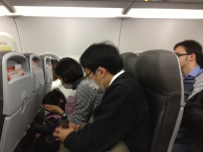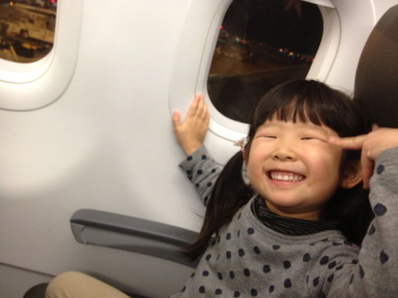 やっと改札口から入り、飛行機の中に。 周りから、聞き覚えのあるかわいい子ども達の声が聞こえてます。