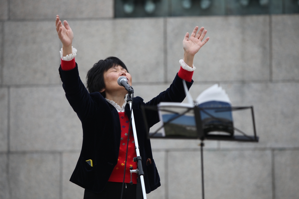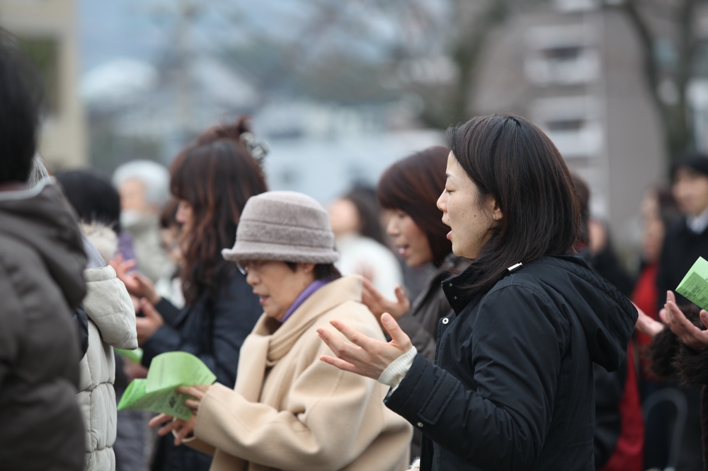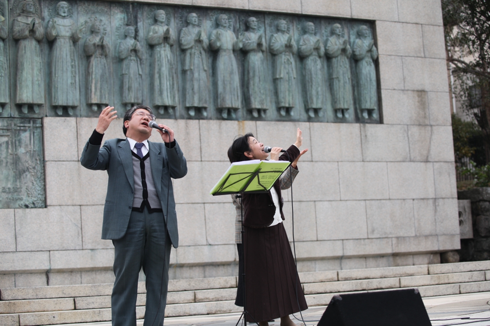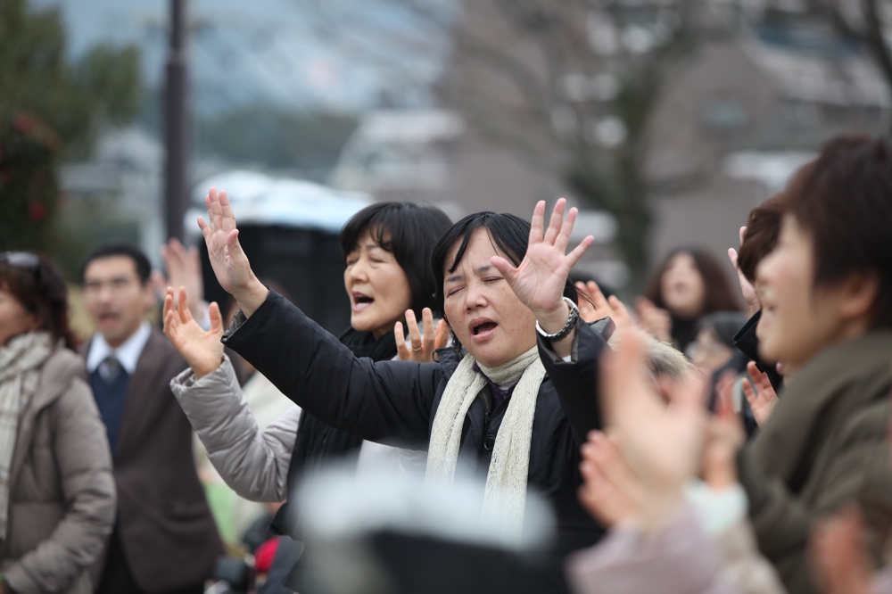 聖会の前半賛美です。西坂の丘に響き渡ります。
