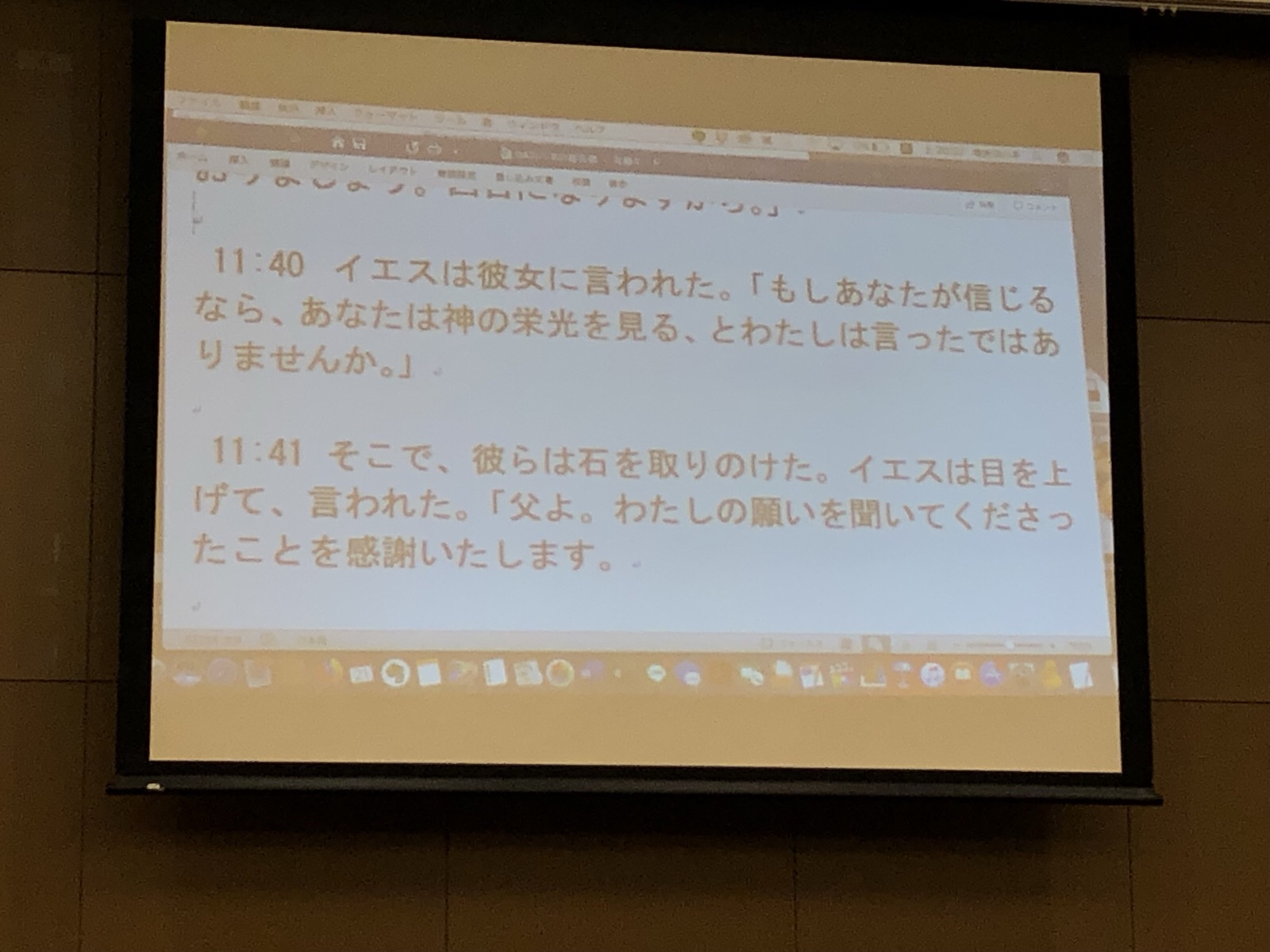 メッセージ箇所はヨハネの福音書11:40からです。