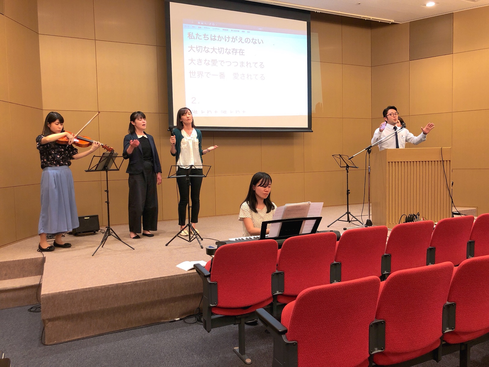 牧師の秋元ヨハネさんを通してメッセージを聞きます╭( ・ㅂ・)و