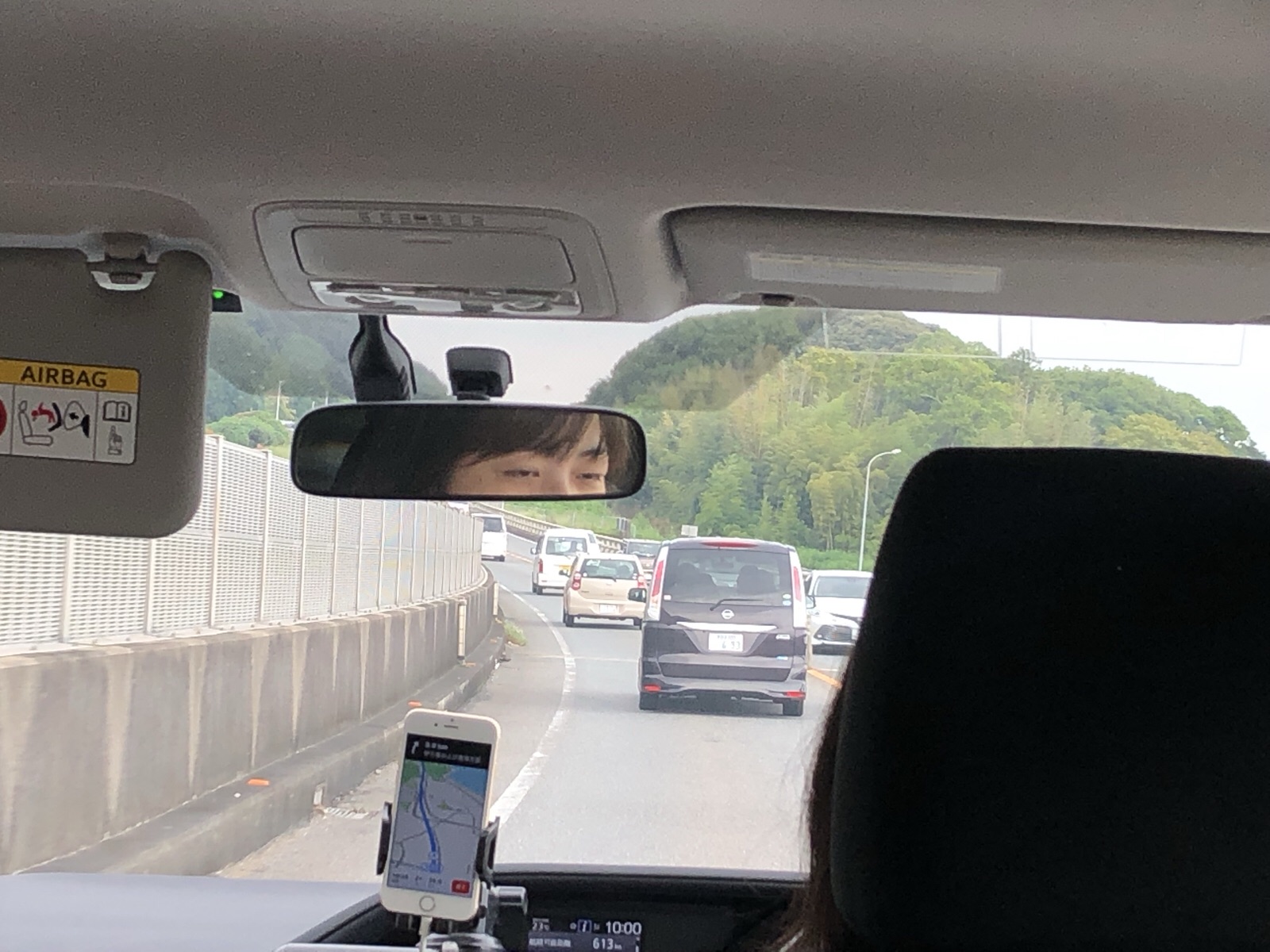 ドライバーのゆみちゃんが映っています。 凛々しい表情で運転してます( • ̀ω•́ )✧ 1号車