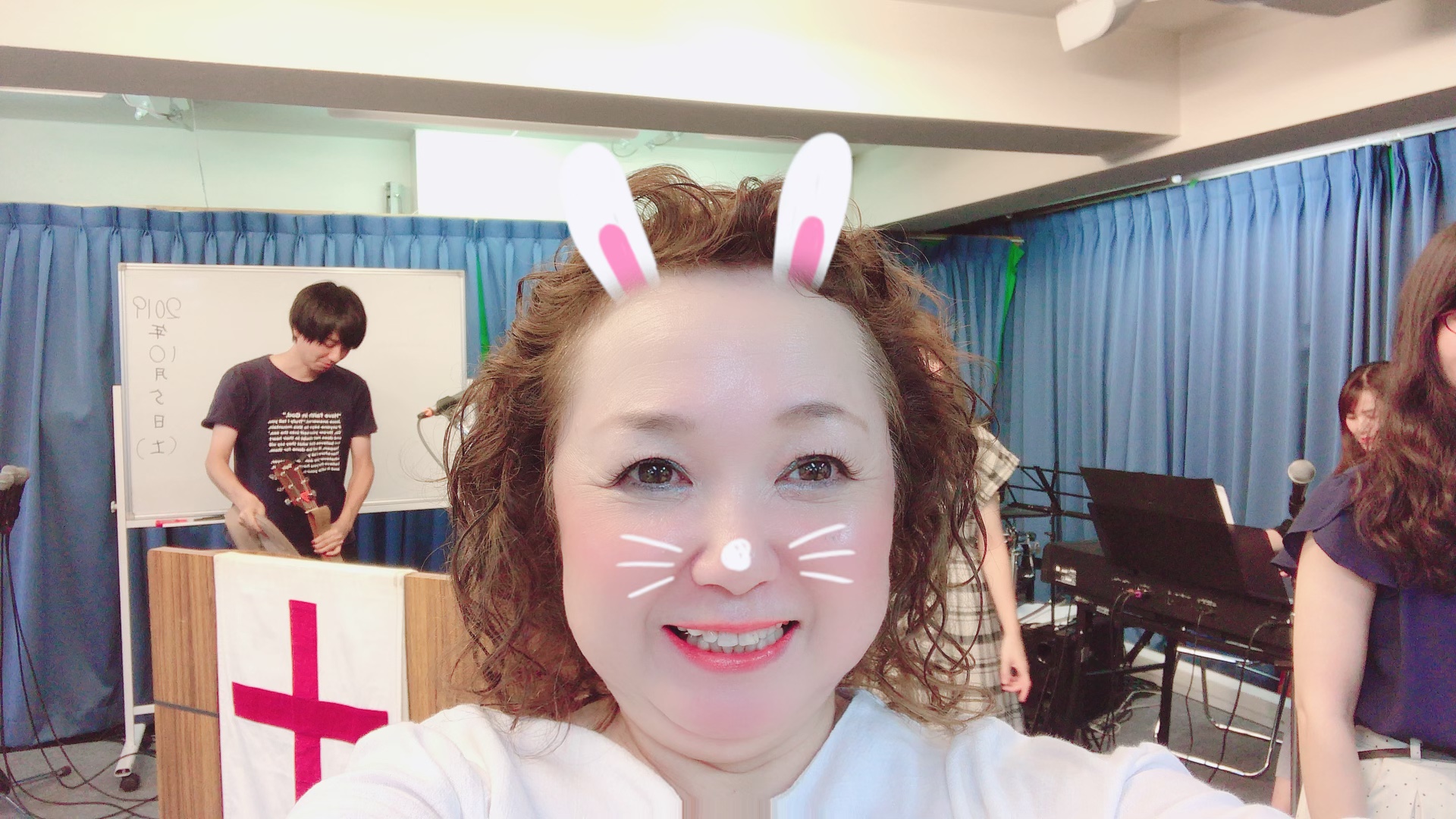 虹ちゃんも土曜礼拝に参加中〜^_^ヤングデイキャンプからおかえりなさい♬