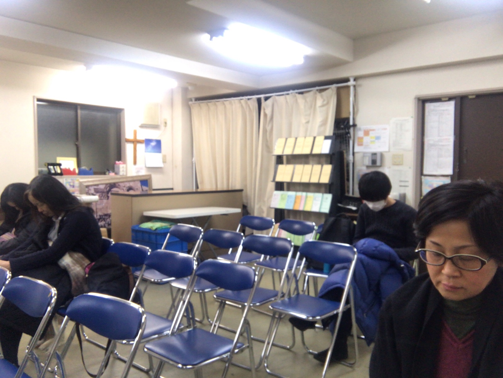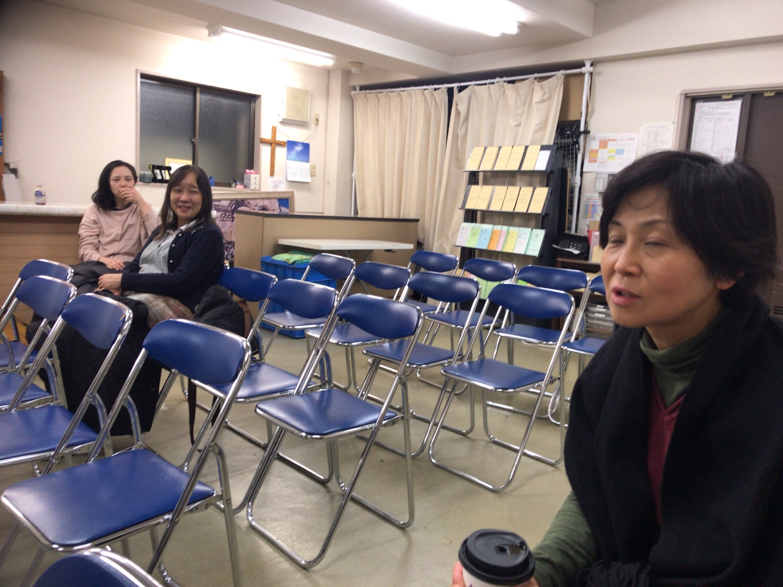 徹夜祈祷会前半が終わって、休憩中。楽しい会話が弾んでます。
