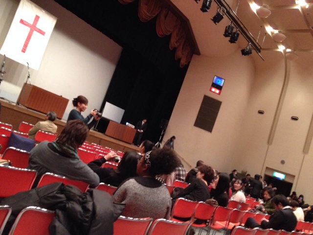 夜の聖会会場、平和会館です!集まってきています。 東京アンテオケ