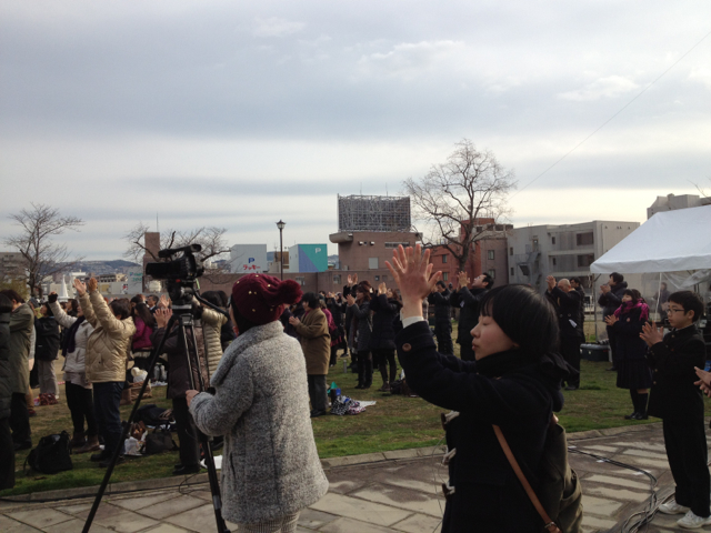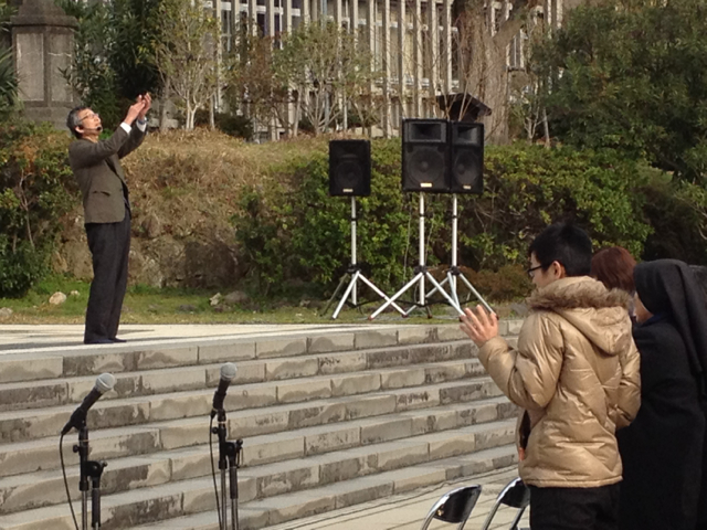 メッセージの最後に、雲が切れ、かげっていた日が射し、西坂の丘を照らしました。