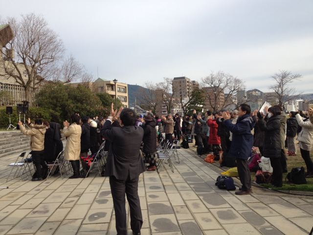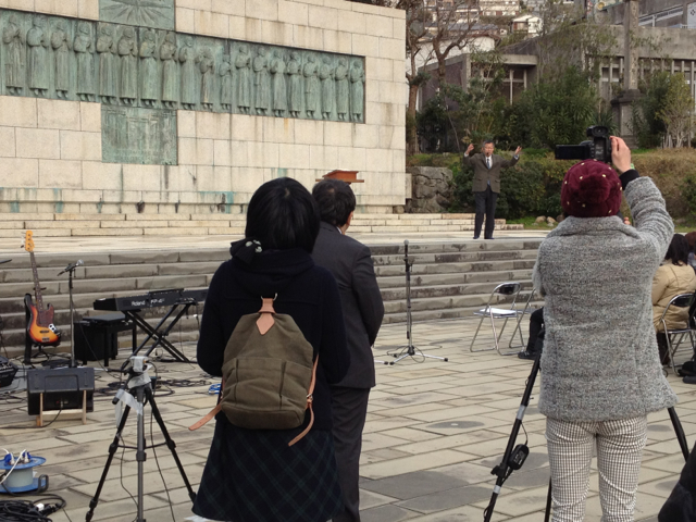 西坂の丘の聖会後も、祈る人達の姿がありました。柏