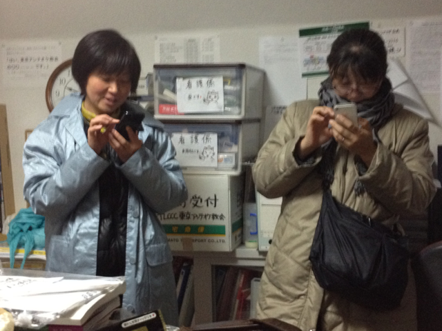 帰り支度のまま、黙々とブログ?をやっているジョイさんと小代さん。