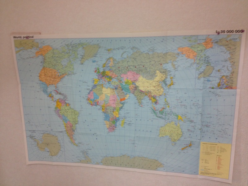 壁に世界地図が貼ってあります。インターネットで全世界が結ばれており、インターネット礼拝会員の方が全世界に拡がっています。 amagai