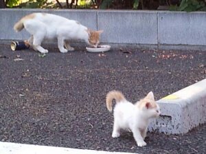 アパートの駐車場に来る猫の親子。模様がママそっくり!です。 (^^)♪