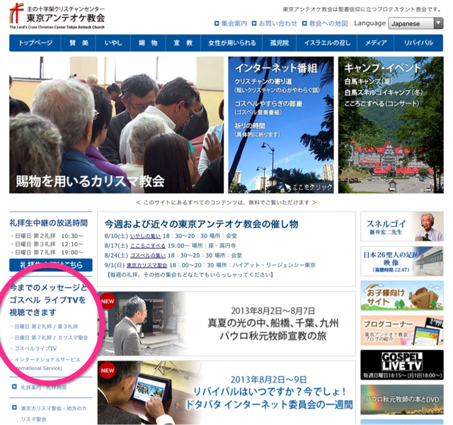 礼拝をいつでも視聴可能 2013/8月/08 [木]
