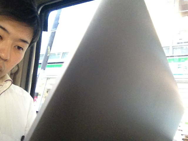 笠原牧師、車の中でお仕事開始! お疲れ様ですm(_ _)m