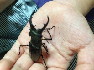 クワガタくん②のブログを見た主人は、「えーそうなんだー!ハサミには、祈りがあったのか〜!」と感動しつつハサミと戯れています‼ あれ〜⁈白馬キャンプで祈っていただいていたこと言ってなかったかしら…(^O^) フジタ