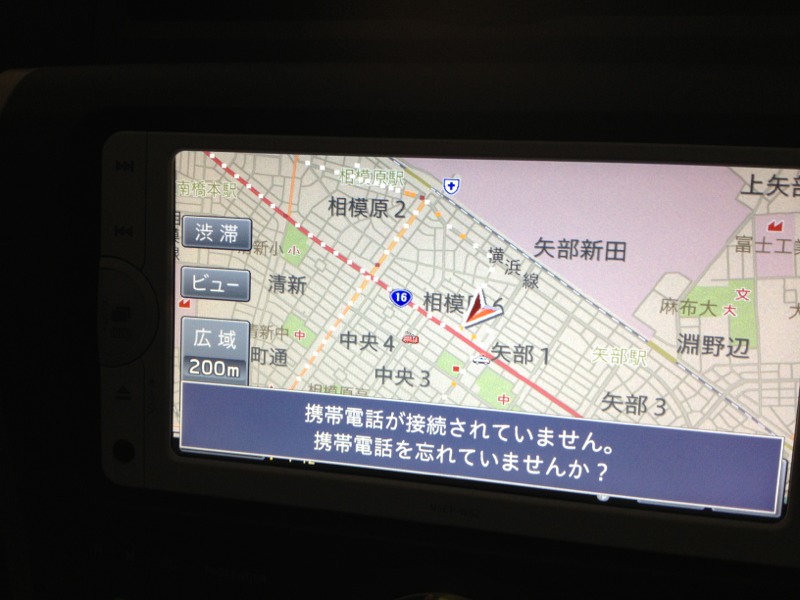 ナビには、Bluetooth機能がついています。連携を設定しますと携帯電話を忘れた時に、このように「携帯電話を忘れていませんか?」と言ってくれます。amagai