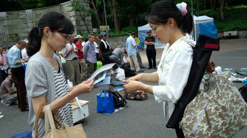 エウカリライブ後、小冊子とゴスコンチラシ配布。あっという間、はけました。しかも、熱心に読まれています!ph