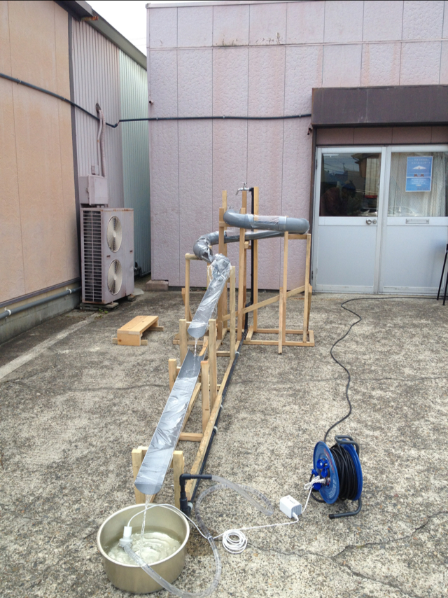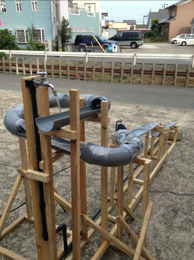 山下牧師手作りの流しそうめん器具です。子供たち大喜び〜