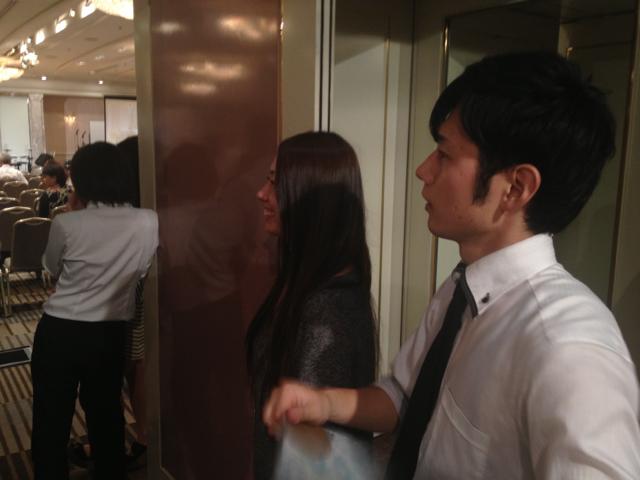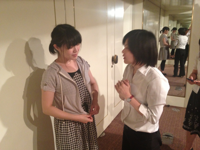 裕美ちゃんにプロジェクターの使い方をレクチャーする愛ちゃん。