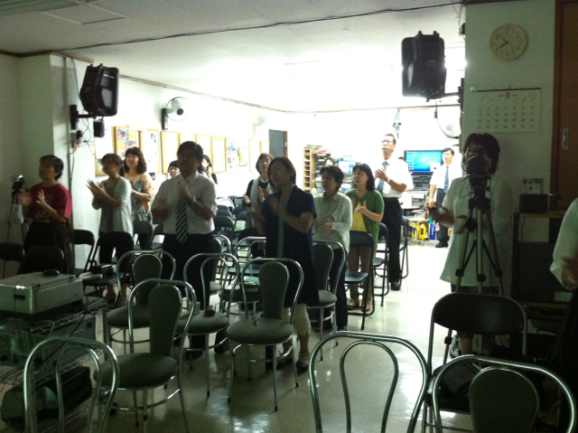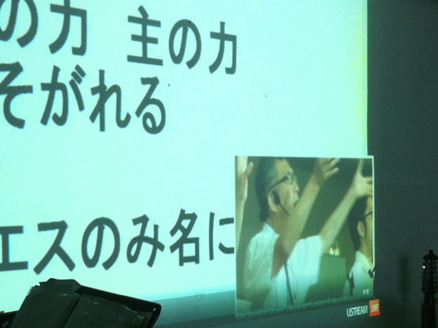 秋元牧師のリードで賛美を捧げています! 一緒に礼拝している感じがします! 沖縄
