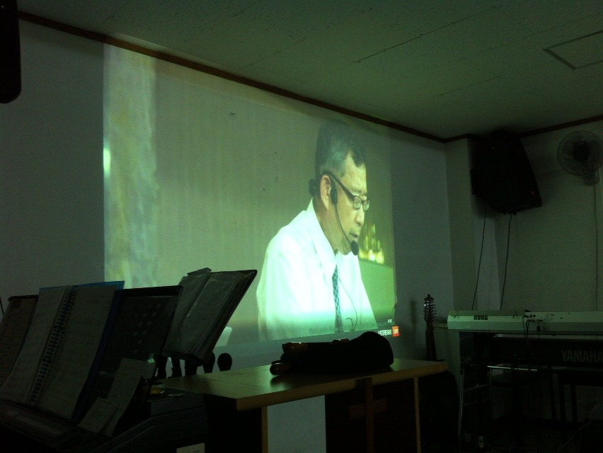 礼拝している秋元牧師の声に、私達もリードされ礼拝しています! 沖縄