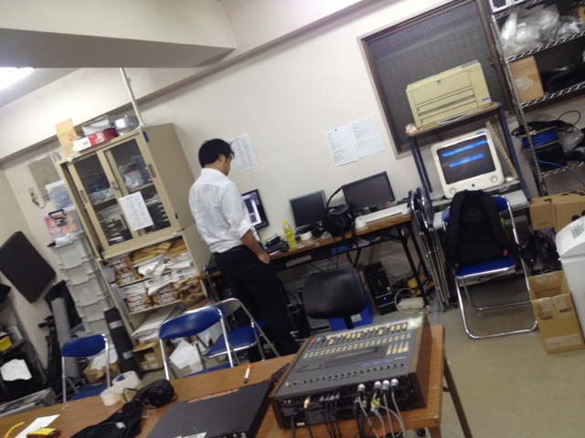 会堂では今日の礼拝の音声アップのため藤田さんが作業開始です!
