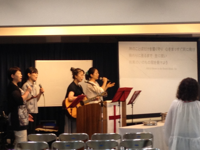 前半賛美を導く広田牧師チーム。 インターネット関係の方々がチームに加わっていますね!