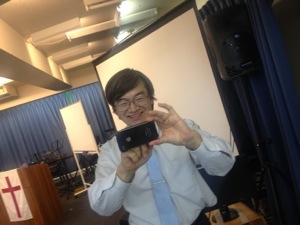 窪田牧師は一仕事終わり、どこかに行くところ一緒に写真を取り合いました!