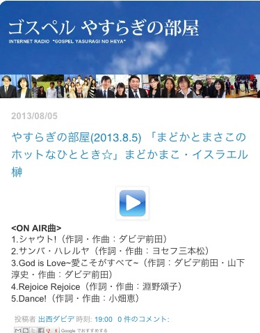 まどかさんと榊さんの痛快なトークをお楽しみください(^^) http://yasuragiroom.blogspot.jp/?m=1