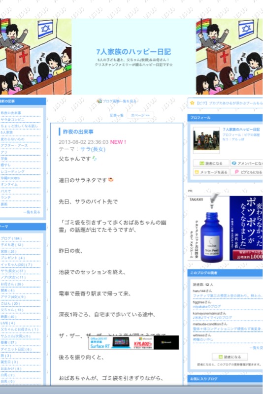 インターネット委員会のメンバーは、ブログをやってる人も多いです。「7人家族のハッピー日記」では、ちょっと怖い話しがUPされています。興味のある方は、どうぞご覧下さい!